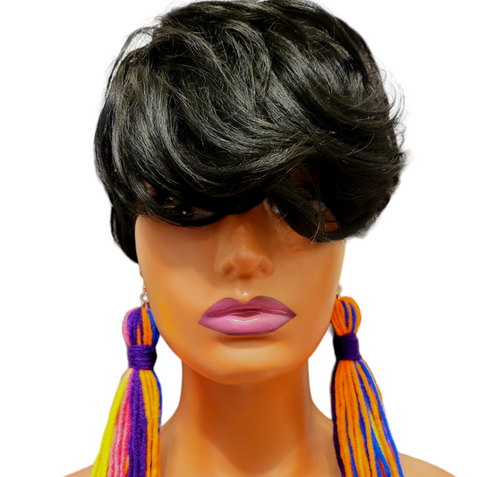 Yarn Tassel Earrings Rainbow