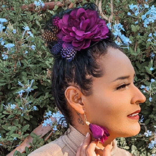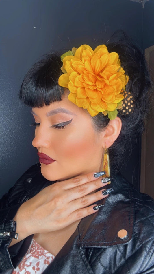 Dahlia Hair Flower with Custom Painted Earrings