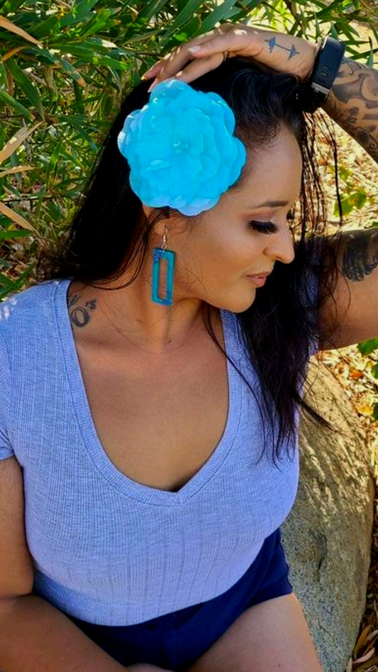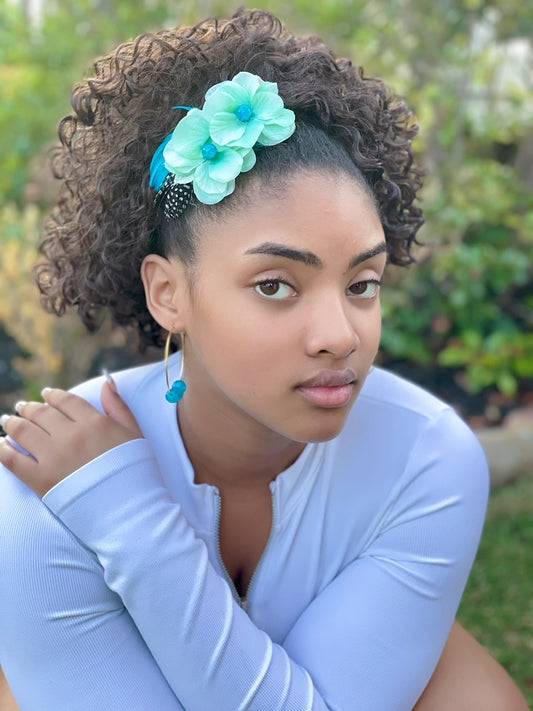 Turquoise Hair Flower & Earring Set