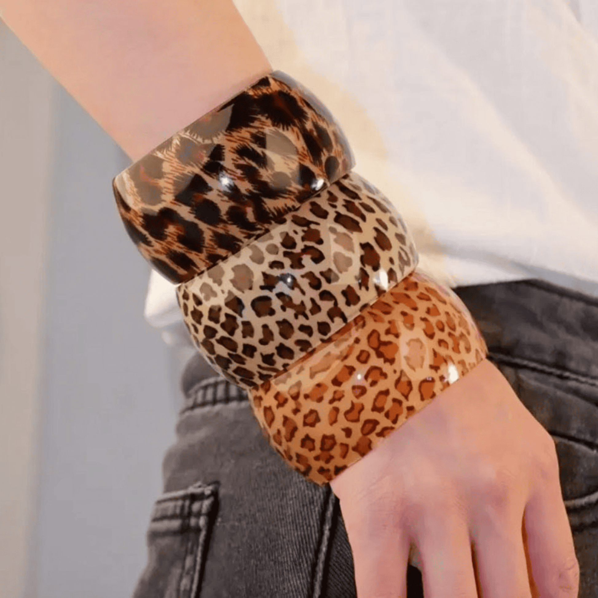 Set of three acrylic bracelets. Lightweight and sleek. One size fits most in leopard prints.