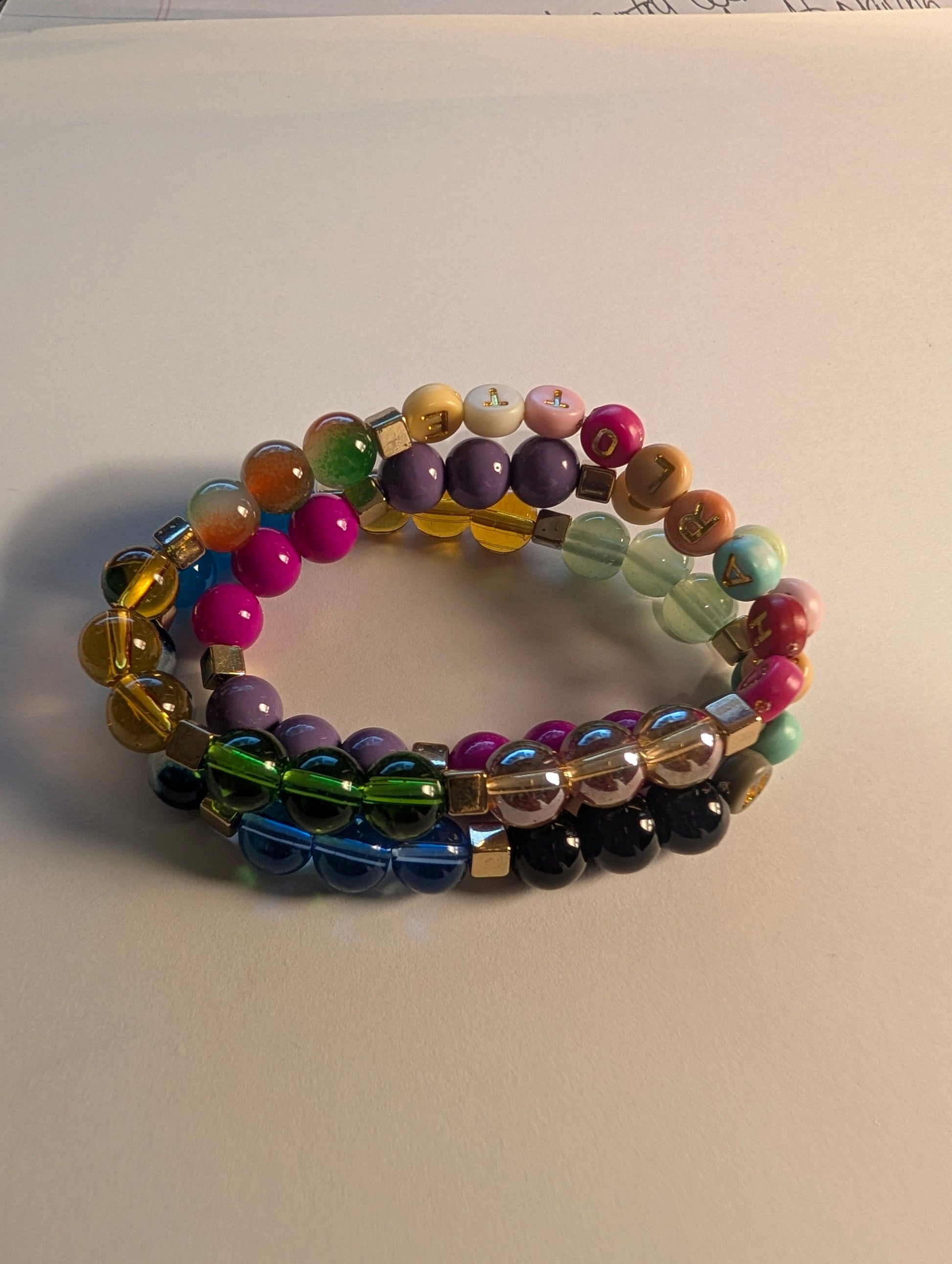 Design a bracelet that speaks to your individuality using premium glass beads and customizable acrylic word beads. Select your desired message, name, or intention, then adjust the bracelet length to achieve the perfect fit for your wrist. This personalized accessory combines quality craftsmanship with meaningful self-expression, making it an ideal choice for those seeking jewelry that tells their story. Each bracelet is uniquely yours, tailored to your specifications and style preferences.