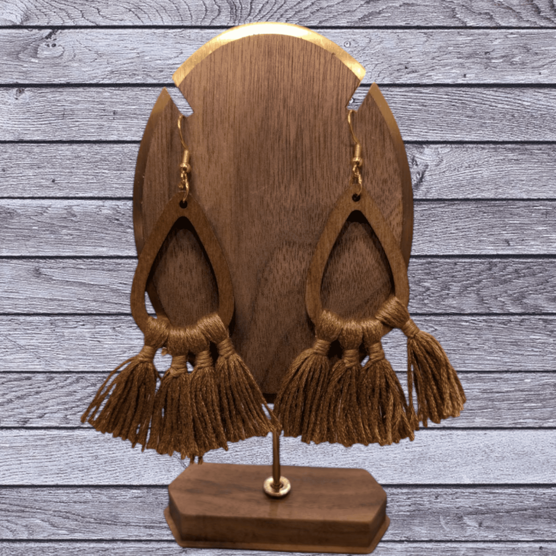 Add a touch of effortless bohemian charm to your look with these stunning handcrafted earrings. Featuring an elegant teardrop-shaped wooden frame and soft, flowing tassels in a brown hue, these earrings are the perfect blend of earthy and stylish. Lightweight and comfortable, they’re ideal for everyday wear or special occasions.