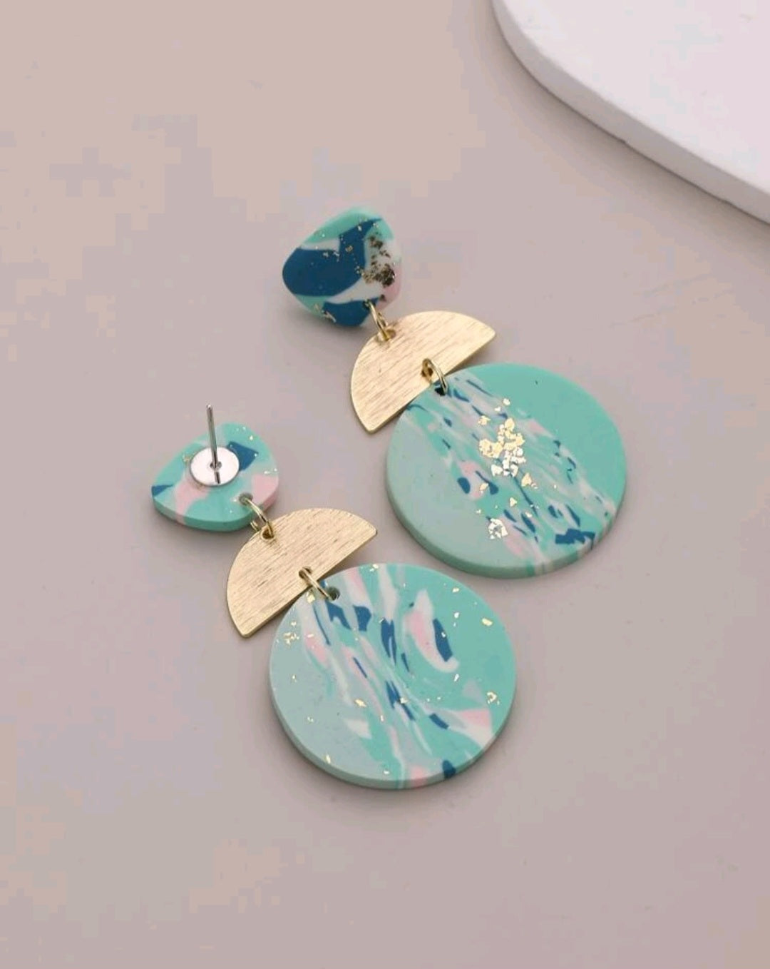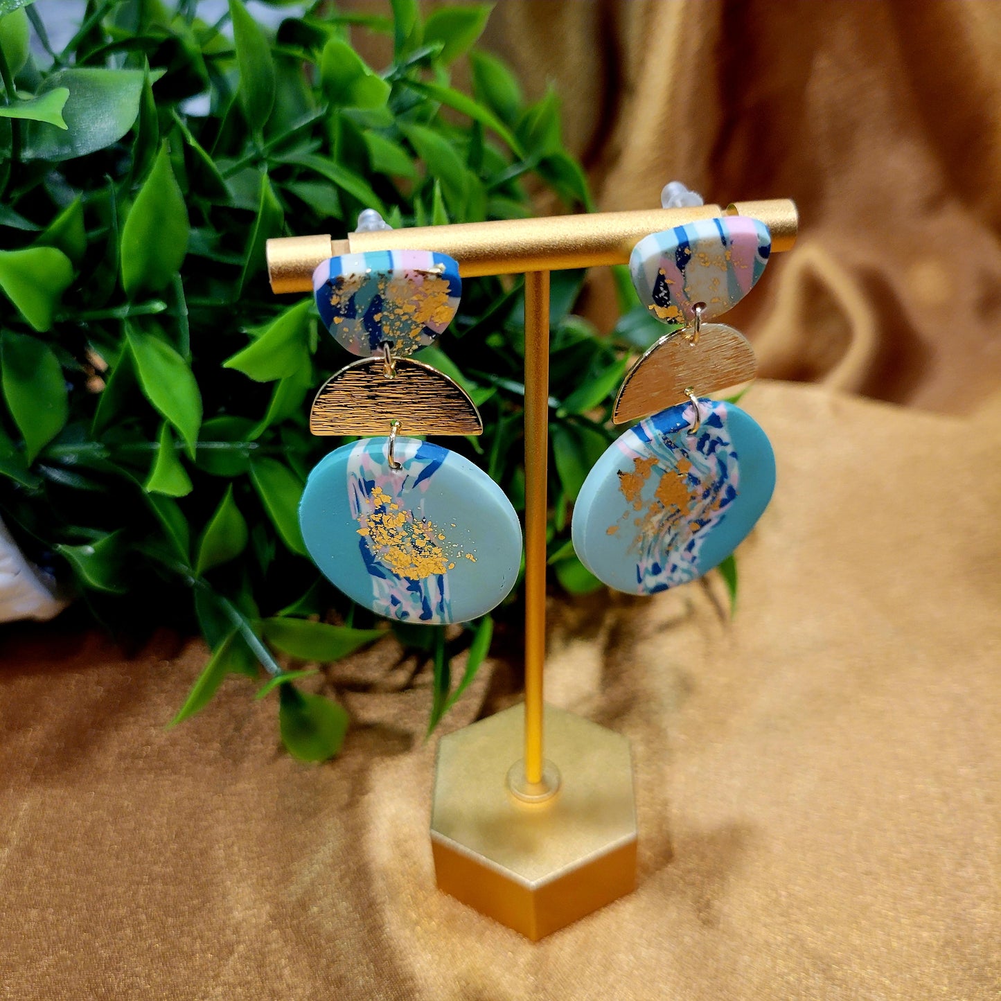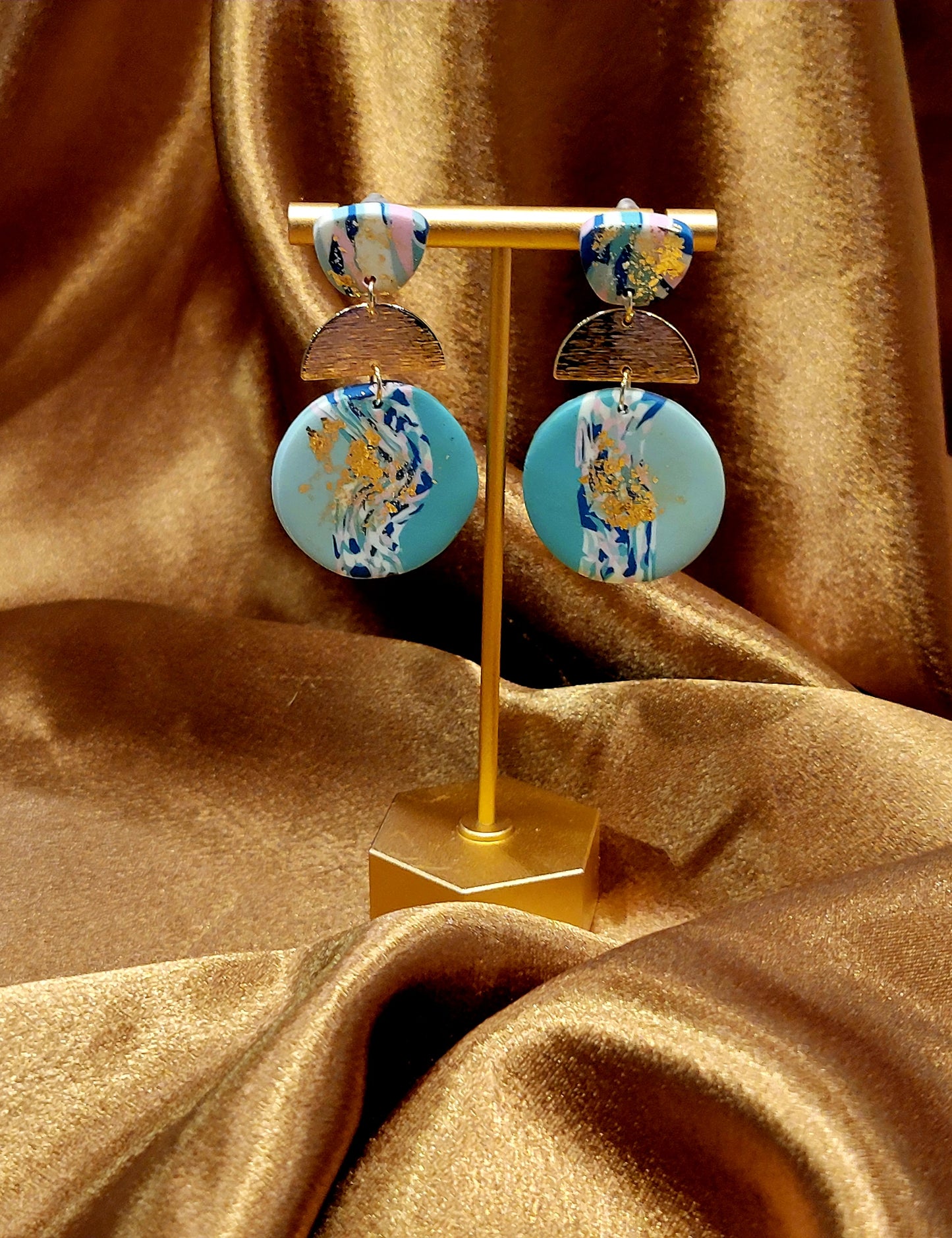 Turquoise & Gold Earring. With an abstract design. Polymer clay earrings.
